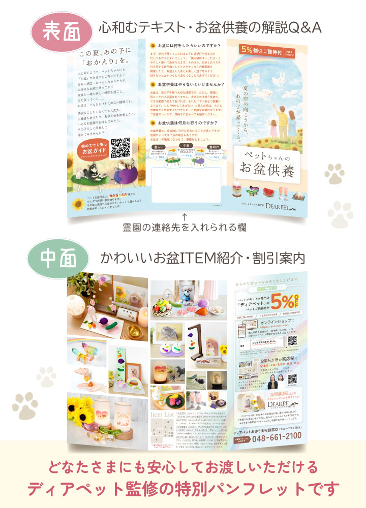 お客さまに火葬後のケア提案ができるこちらのパンフレットは、配布していただくことで霊園様にも利益がございます。