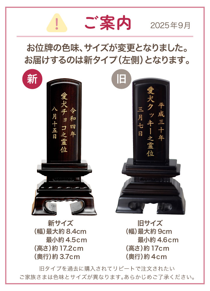 四十九日の法要はもちろん、どんなときでもペットちゃんのためにお作りいただけます。