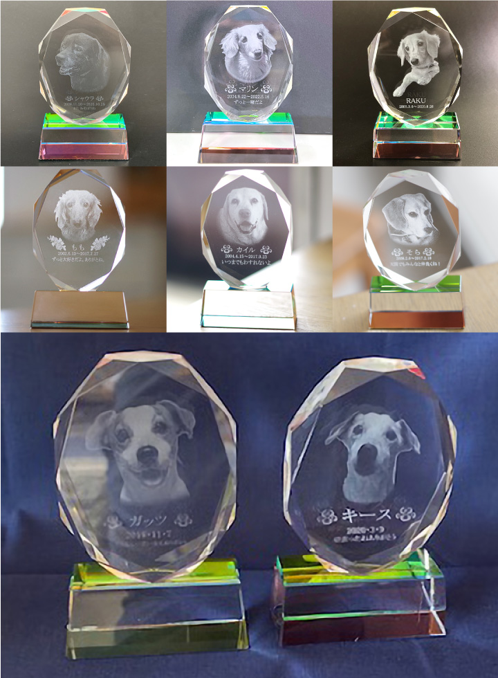 ペットちゃんが生きた証を、クリスタルガラスに彫刻いたします。