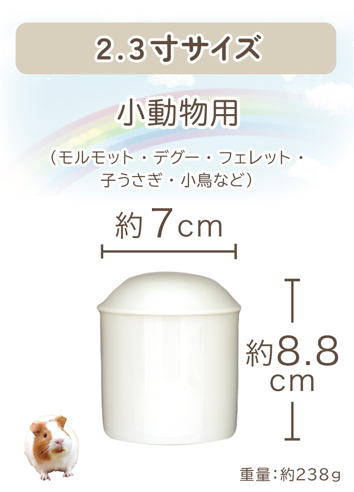 ペットちゃん向け白並2.3寸のお骨壷です。