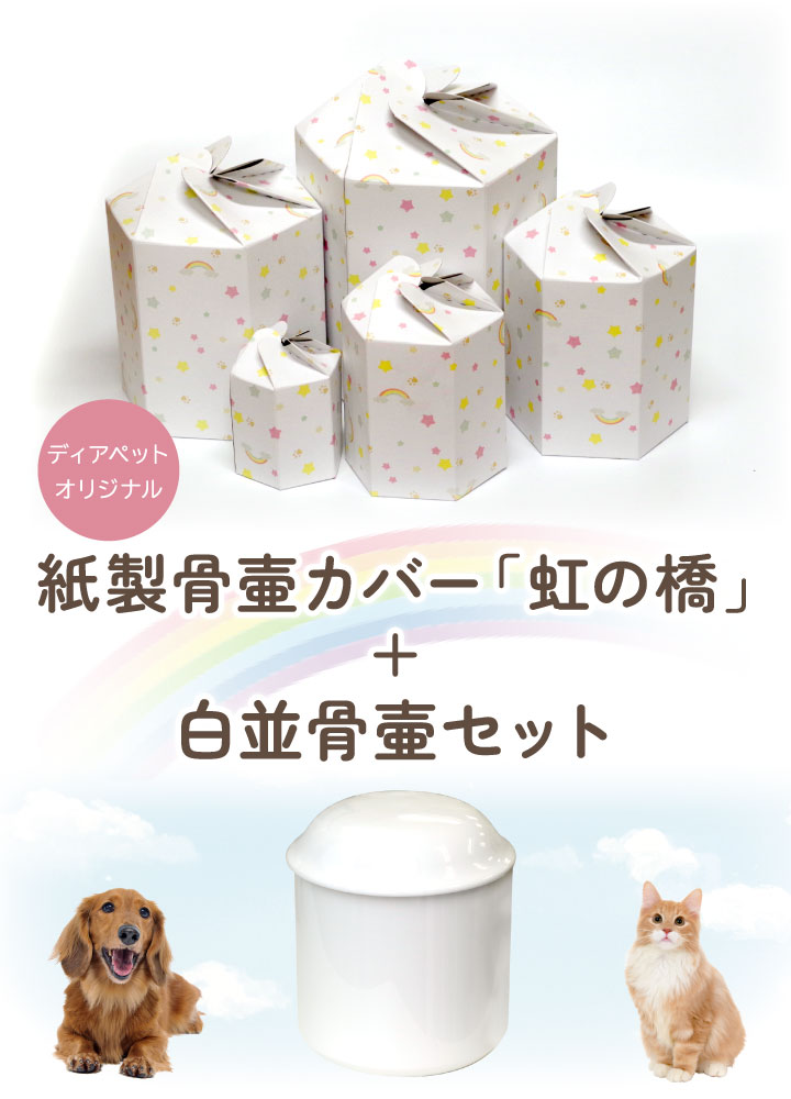 【セット販売】白並骨壷+紙製骨壷カバー「虹の橋」